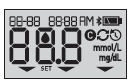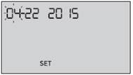 - To turn your meter on, press and hold OK until the start-up screen appears. Once the device is on, release OK. The meter will now automatically prompt you to set the time and date. The SET icon will appear on the screen to indicate that the meter has entered setup mode.