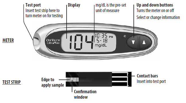 - Warning: Keep the meter and testing supplies away from young children. Small items such as the battery door, battery, test strips, lancets, and control solution vial cap are choking hazards.