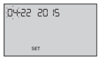 - To turn your meter on, press and hold OK until the start-up screen appears. Once the device is on, release OK. The meter will now automatically prompt you to set the time and date. The SET icon will appear on the screen to indicate that the meter has entered setup mode.
