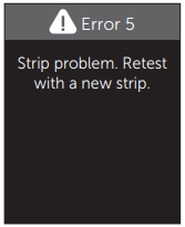 - Error message could be caused by a used test strip, applying blood to the test strip before inserting it into the meter or a problem with the meter or test strip.
